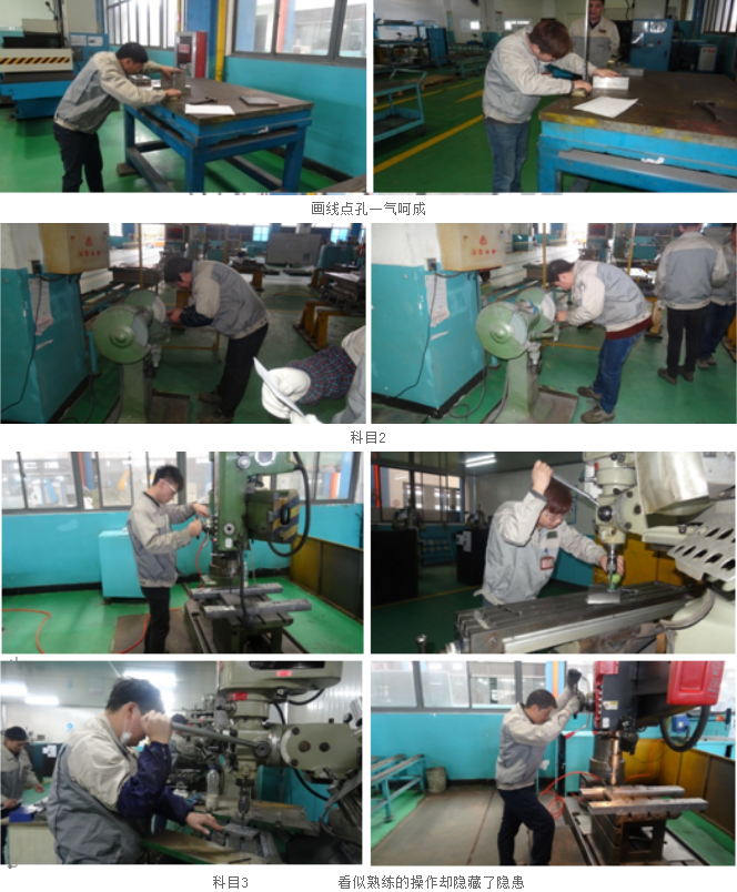 科目1:畫線、點孔。(作為機加工人員的基本能力,可表現出員工對加工準備工作的理解和識圖能力的體現,是保證零件成品質量的關鍵工序。)